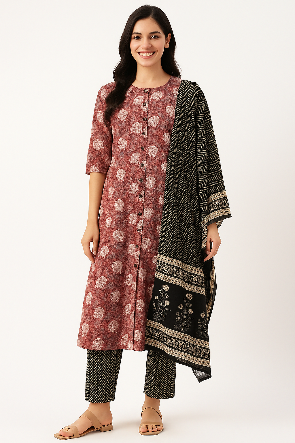 ❤️🖤Royal Maroon Charm A-Line Set | Women 3-Piece