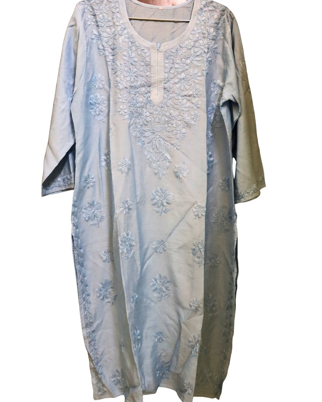 ๐Ÿงต Same-Tone Resham Thread Work โ€“ Elegant chikankari embroidery on kurta in matching blue tones for a refined, classy look.