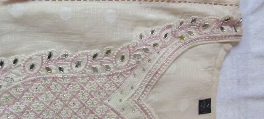 🌸 Hand embroidery with mirror work on neckline