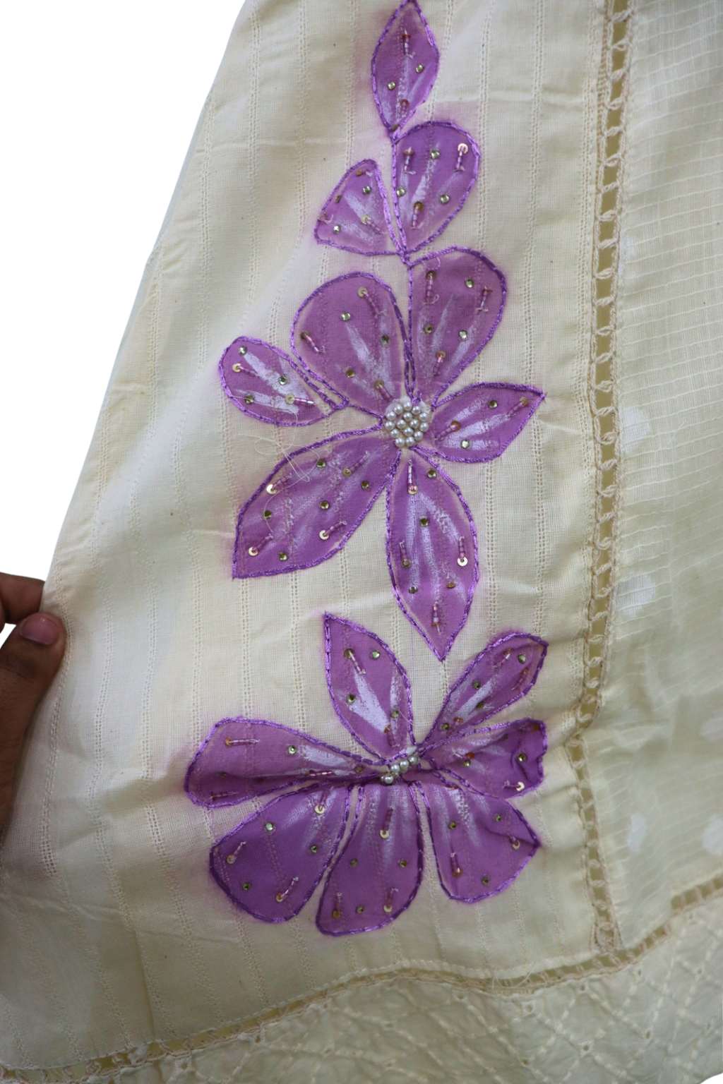 🌸 Floral handwork on kurta & pants