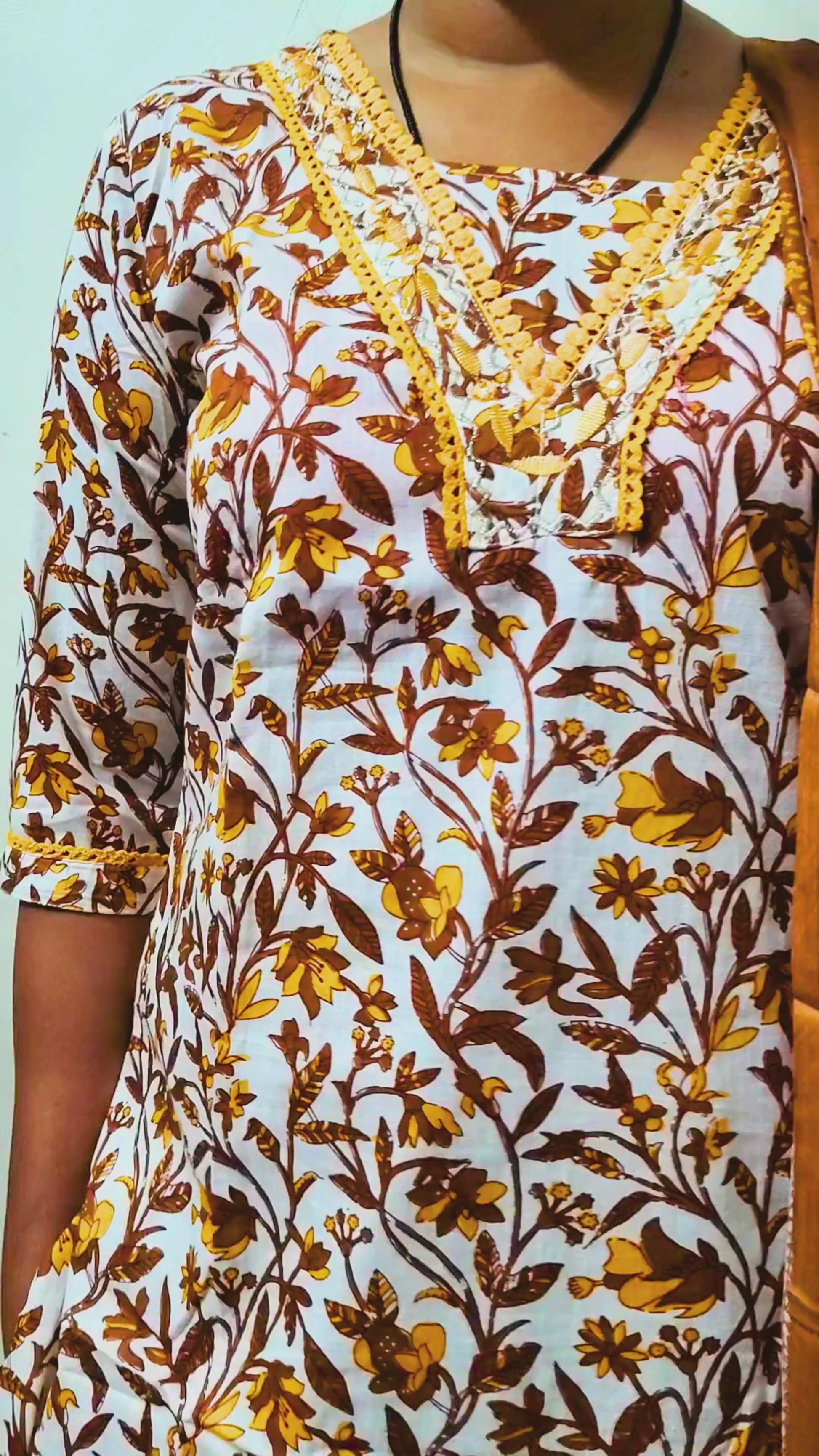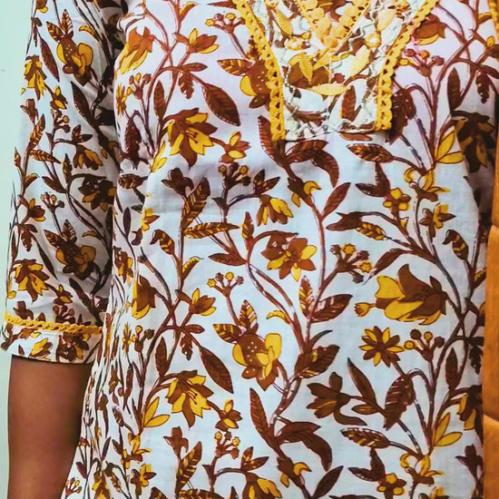 ✔️ 🌼 Beautiful brown & mustard floral printed Kurta Set.