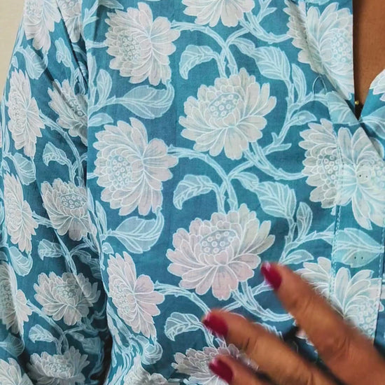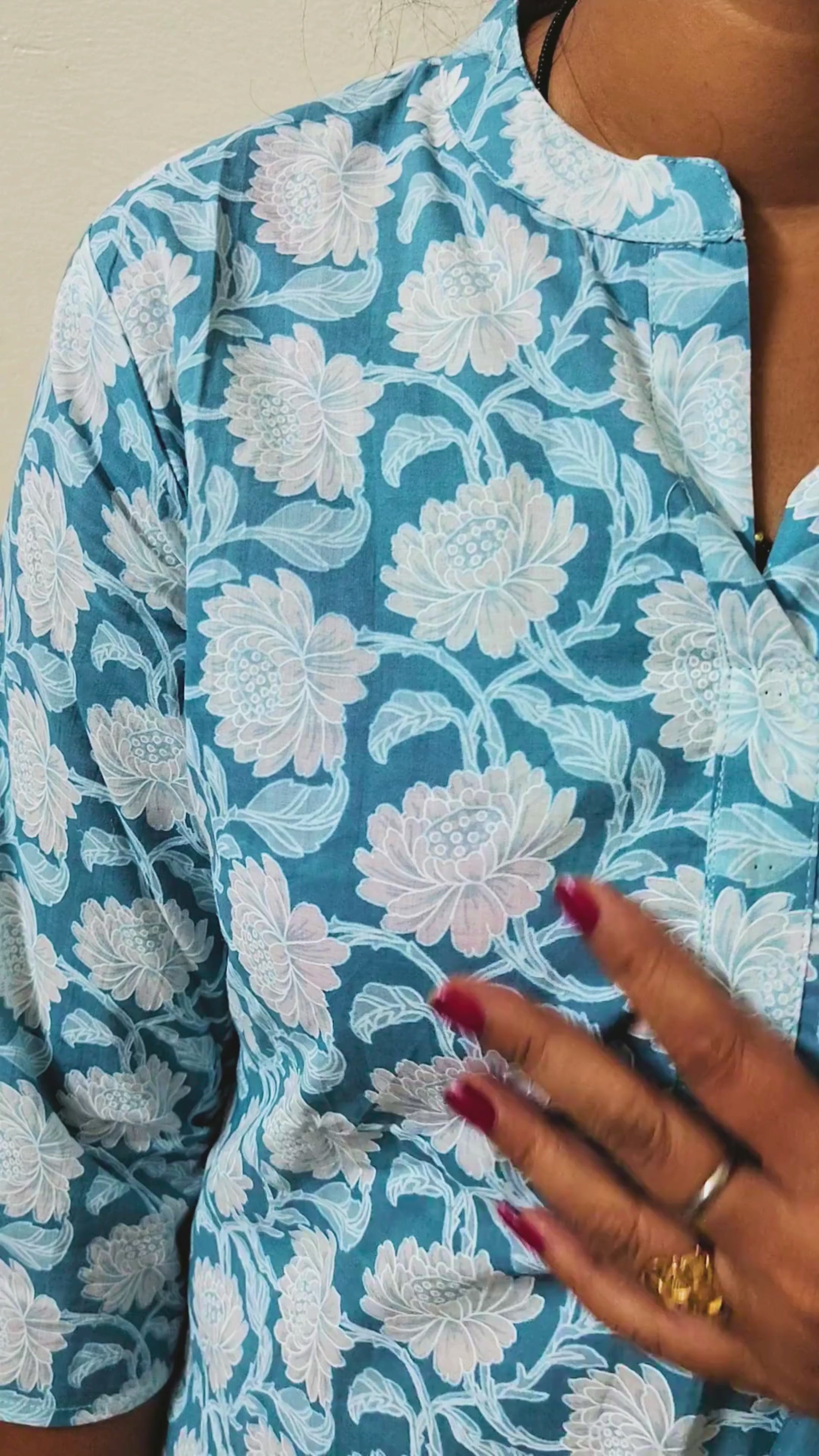 ✔️🌸 Beautiful hand block floral prints – Eye-catching turquoise and white patterns for a graceful, ethnic look